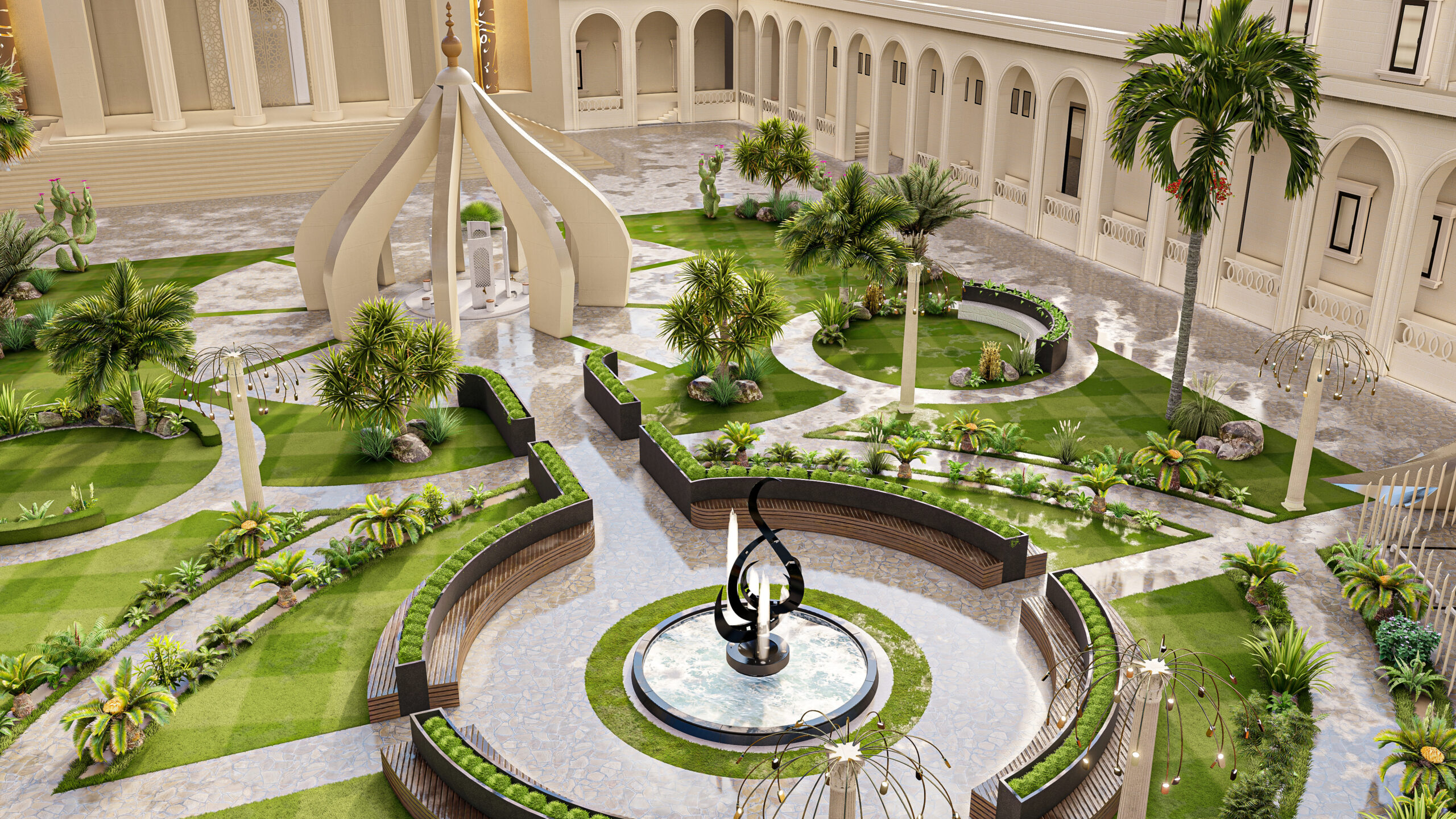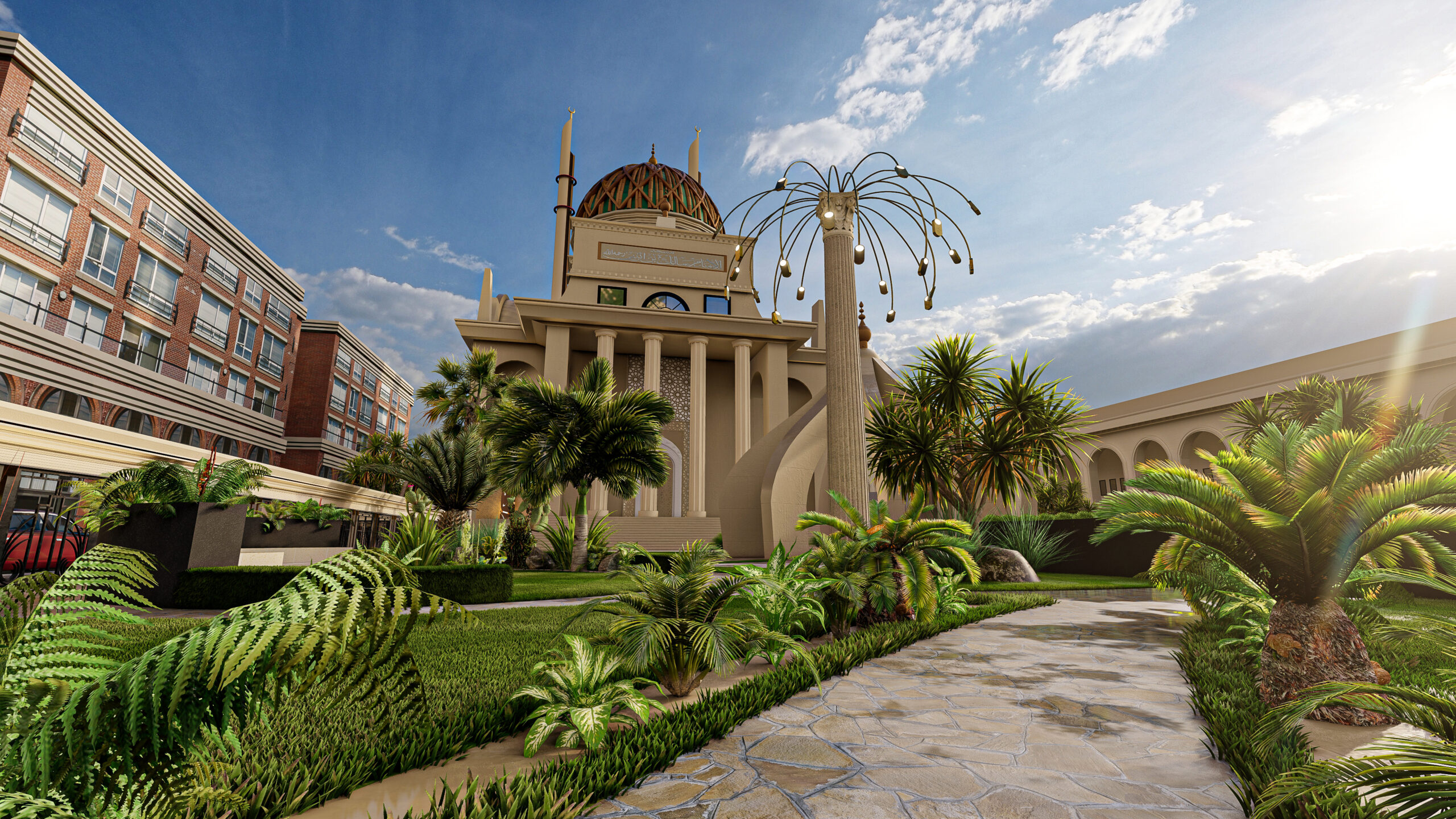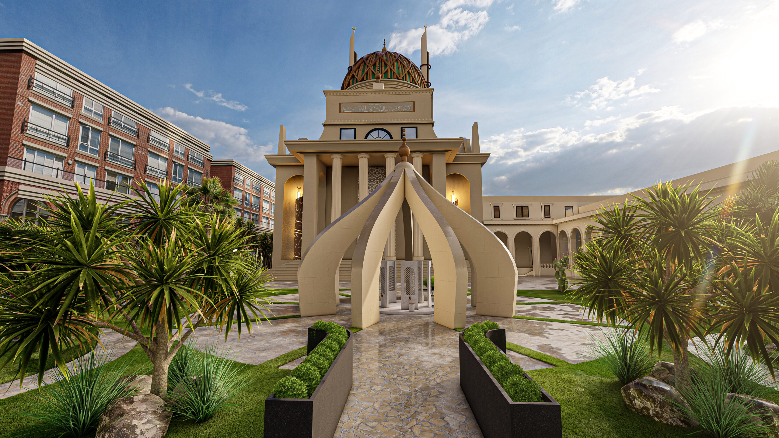 To preserve the structure’s texture, we elegantly incorporated patterns and verses. The interior design offers a comprehensive atmosphere where the light shimmering in each niche arch integrates with spirituality. The selected precious verses on the walls transform the space into a spiritual treasure, beyond an ordinary place of worship.